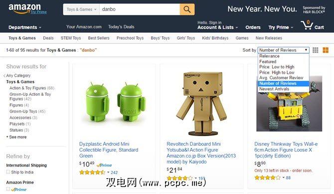 有按平均客户评论进行排序的选项,但评论数量减少时,这无济于事。此外,可以通过虚假评论轻松解决问题-在线购物的一个长期问题。仅在 Books 类别中提供更有用的 Most Reviews 选项。