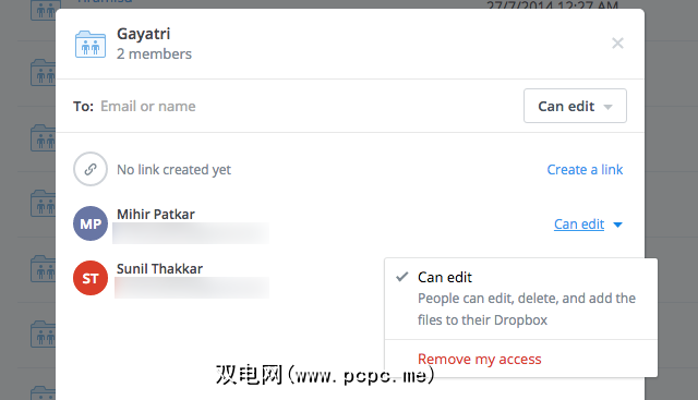 单击您自己的名字旁边的所有者或可以编辑,然后选择“ 删除我的访问权限"。当提示您保留该文件夹的副本时,请不要选中该复选框。就像这样,它已经从您的Dropbox中消失了!