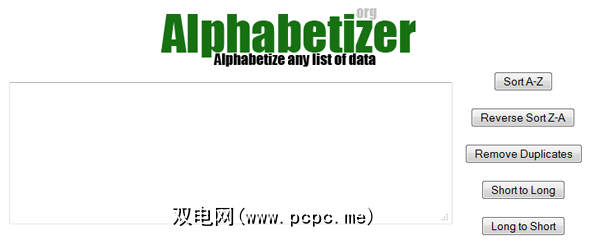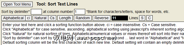 Alphabetizer比这要复杂一些-虽然不多,但更多复杂。是的,您可以按字母顺序(向前和向后)对文本行进行排序,但也可以按行长(短至长,长至短)进行排序,以及删除重复的行。我认为这是一个很棒的工具,它具有易于记忆的URL,并且在很多场合对我来说都很方便。