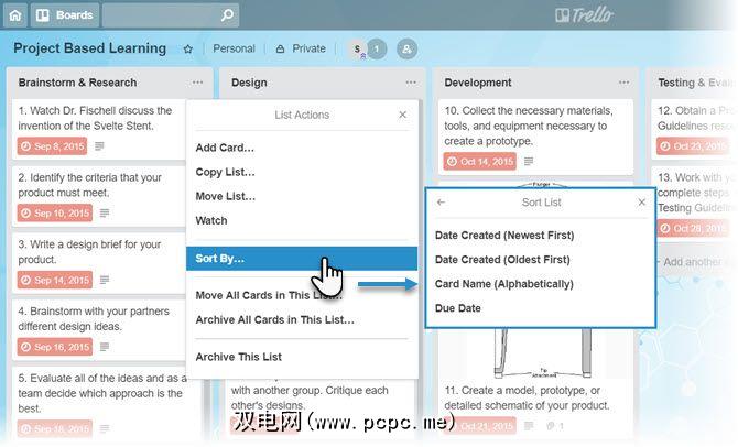 能够对不同的卡进行排序通过多种方式可以按特定顺序组织它们。例如,当Trello板上有很多纸牌时,您可以按创建日期排序,并将最旧的纸牌放在顶部。或按任何到期日期重新排列。
