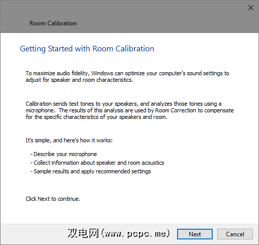 此选项有些不同。单击它会打开房间校准窗口,其中包含一些信息。