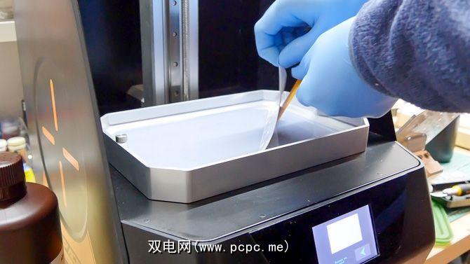 将打印刮板刮下后,您需要用异丙醇(IPA)清洗所有东西。 ),高度易燃且有害。如果其中一张打印失败,则可能需要将树脂从槽中倒出并过滤掉固体残留物;否则,再次打印时会损坏屏幕。