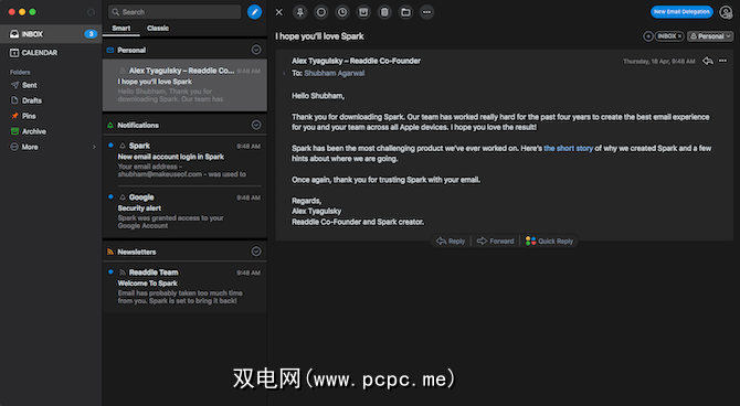 与Gmail或Inbox不同,Spark提供的桌面客户端继承了相同的,令人愉悦的设计语言。甚至还有一个 Dark模式,这在移动应用程序中是很奇怪的。