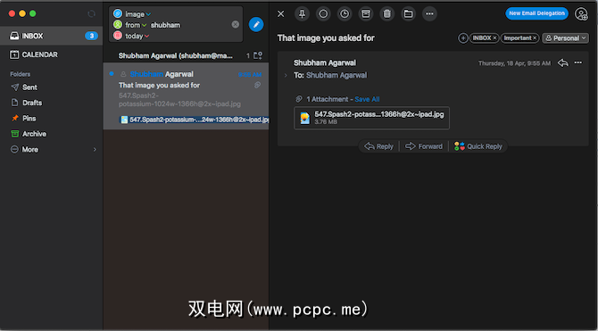 Spark的搜索与自然语言查询兼容,并且只要您键入要查找的内容就可以智能地提取结果。对于。因此,例如,如果您想要上个月起名为Shubham的人发送的文档,只需键入“上个月起Shubham的PDF附件",Spark就会提取相关的电子邮件。