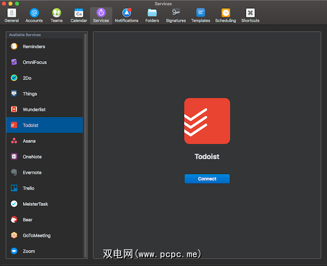 Spark支持多种第三方服务,可让您导入和导出数据。在撰写本文时,Spark插入了Pocket,OneDrive,Todoist,Slack等流行平台。