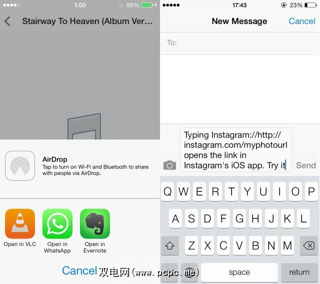 是否曾经尝试通过iMessage或WhatsApp发送指向Instagram照片的链接?唯一的选择是复制照片URL并将其粘贴到聊天窗口中。问题是,当一个人单击此链接时,它将在Safari中打开。这是一个简单的修复方法,可以在各自的应用程序中打开链接。只需在URL前面添加appname://。例如,要在Instagram中打开页面,您需要将链接发送为instagram:// http://instagram.com/xyzabc。