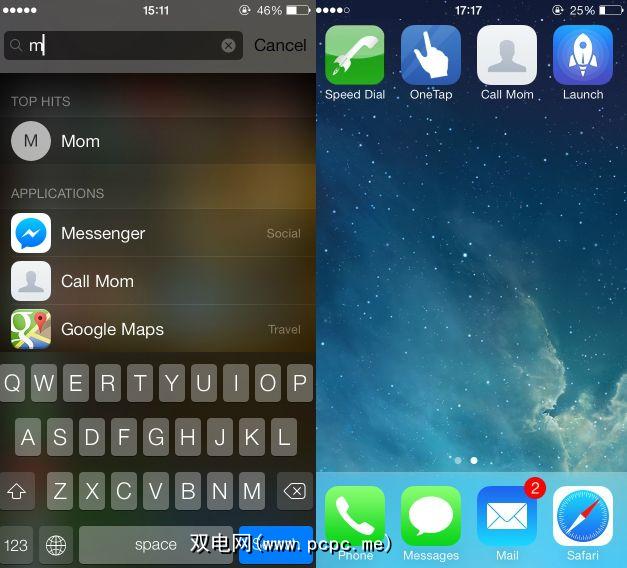 Spotlight Search是iOS 7中功能最完善的功能之一,但是我遇到的大多数iPhone用户很少使用它。您所要做的就是在主屏幕上向下滑动并输入联系人的姓名。如果此联系人是您的最爱,则在您输入第一个字母后便会立即显示。再点击两次,您就可以呼叫该人–比上述默认方法快得多。乍一看,两者之间的差异似乎很小,但是如果您打很多电话,它将节省大量时间。