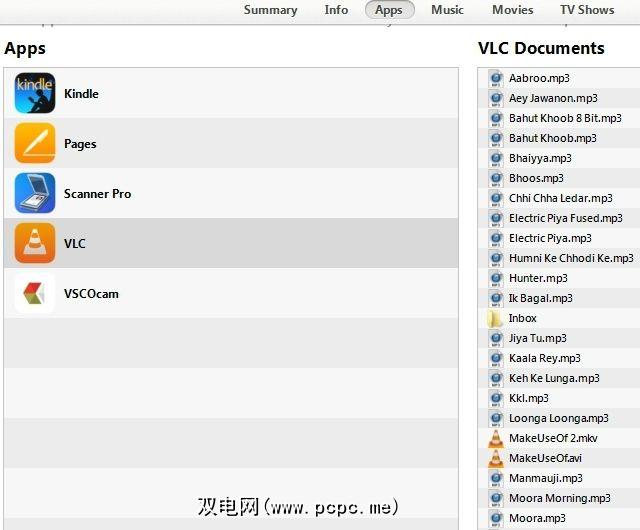 如果您已经拥有iTunes,则可以使用iOS和Kindle等VLC应用支持拖放文件传输。将您的iOS设备连接到计算机,在iTunes上打开“应用程序"标签,然后向下滚动以找到“文件共享"子标题。向下滚动一点,您会发现两个按钮-添加和保存到-可用于从设备复制文件和向设备复制文件。
