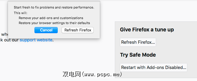 您可以刷新Firefox来删除您下载的所有加载项和所做的自定义。