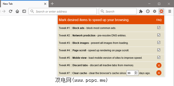 几乎每个浏览器都有一些提高性能的常用技巧。您可以手动执行所有这些操作,也可以让一个方便的扩展程序“ Speed Tweaks"来处理它。