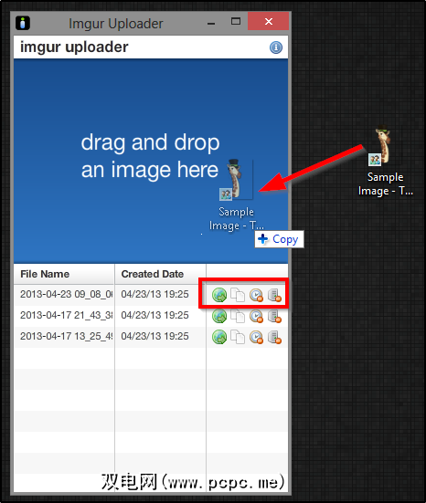 蓝色框下方是您上传的所有照片的列表。右边有四个控件:“ 在浏览器中查看",“将URL复制到剪贴板"(方便),“仅从历史记录删除(本地)" 和“ 从Imgur删除图像" .com “。