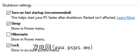 警告::在PC上启用快速启动后,计算机将不会像通常那样关闭。这可能会导致更新问题。如果要更新PC或需要完全关闭PC,请关闭“快速启动",然后通过“开始"或“高级用户"菜单手动关闭计算机(关闭或退出>关闭 ),或执行普通重启。重新启动不受快速启动功能的影响。