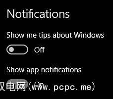 显示提示关于Windows 是另一个要避免的Windows进程。它看起来似乎无害,但是此过程会扫描您的计算机,以牺牲性能为代价提供定制的Windows提示。要禁用此功能,请转到开始>设置>通知和操作>向我显示有关Windows的提示>关闭。