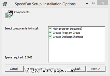 应用程序的安装程序可以说出其简单性和优美性。最严重的罪犯捆绑了浏览器工具栏和其他垃圾来试图赚钱,而肿的庞然大物常常迫使您执行复杂的多步骤过程。 SpeedFan的安装程序使事情变得简单,仅需两个步骤,在此过程中绝对不会出现垃圾: