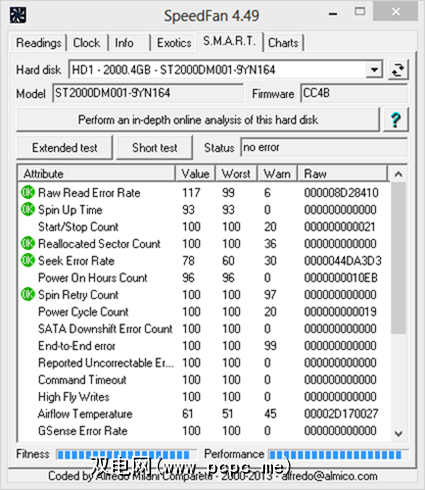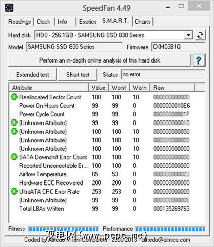 您真的不认为SpeedFan会将自身限制为一个仅涉及硬盘的数字,您是否?只需单击SMART选项卡,即可查看有关硬盘的更多信息: