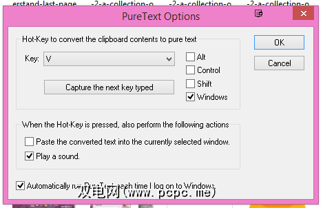 PureText使您可以将一段格式化的文本转换为纯文本。然后按预设的热键,然后该文本将被精简为纯旧文本,可随时粘贴到需要的地方。
