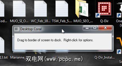 DesktopCoral实际上不是出于“整理"现有桌面混乱的考虑,而实际上是用于稍微不同的目的。这是您桌面上的一个区域,出于完全不同的目的,该区域将被清除-您可能已最大化使用的其他应用程序或当前使桌面混乱的任何图标都不会侵入该区域。