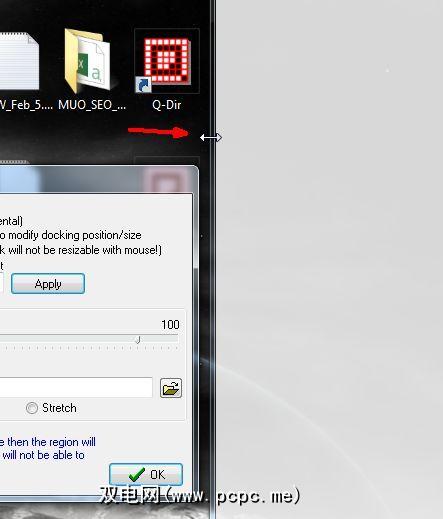将此框沿屏幕的任意边缘放置,它将拉伸屏幕的长度并成为默认宽度。本质上,这是畜栏–桌面上的其他任何东西都变得无法触摸的桌面空间。