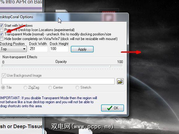 准备就绪后,请选中“透明模式",灰色背景消失。实际上,您可以根据需要自定义背景,以便它显示您选择的任何图像–您只需要在“选项"窗口中选择背景图像文件即可。