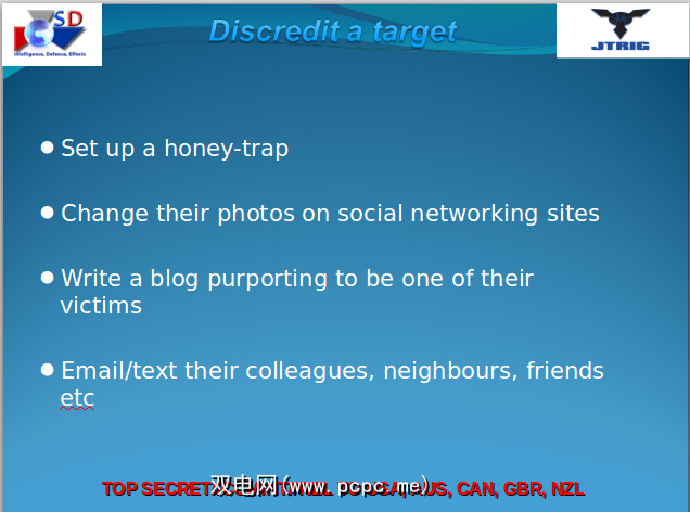 除了特定的恶意软件应用程序之外,CSE似乎拥有训练有素的熟练员工,能够破坏和破坏网络和应用程序。通信安全机构泄露的PowerPoint演示文稿称为“ CSEC网络威胁功能-SIGINT和ITS:端到端方法",从上到下评估他们的能力。这不仅包括主动的系统防御,还包括“禁用"和“摧毁对手的基础设施"以及分发恶意软件的机制。