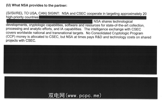 NSA一份泄漏的备忘录中回答了这个问题,这份备忘录名为“加拿大国家安全局与加拿大通信安全机构(CSA)的情报关系",该备忘录于2013年4月3日发布。该备忘录将NSA和CSA之间的关系放到了历史背景中,然后继续确立了这两个组织之间的当前合作水平。该文件有一些经删节的行文,并附有情报机构的行话,但值得注意的是,它表明CSA已与NSA合作,“访问和利用"了许多外国情报目标的网络,包括在中东发现的目标,北非,欧洲和墨西哥。