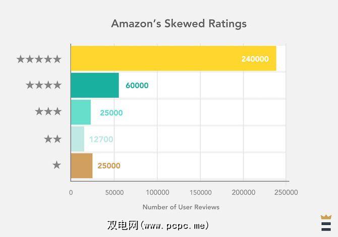 “最佳评论"网站分析了488种产品的360,000个用户评分,并发现了上述分布。超过66%的用户评分被评为五星级。没有人相信亚马逊上有这么多的五星级消费产品,对吗?另外,评级是公司增加其数量的最省力的方法。