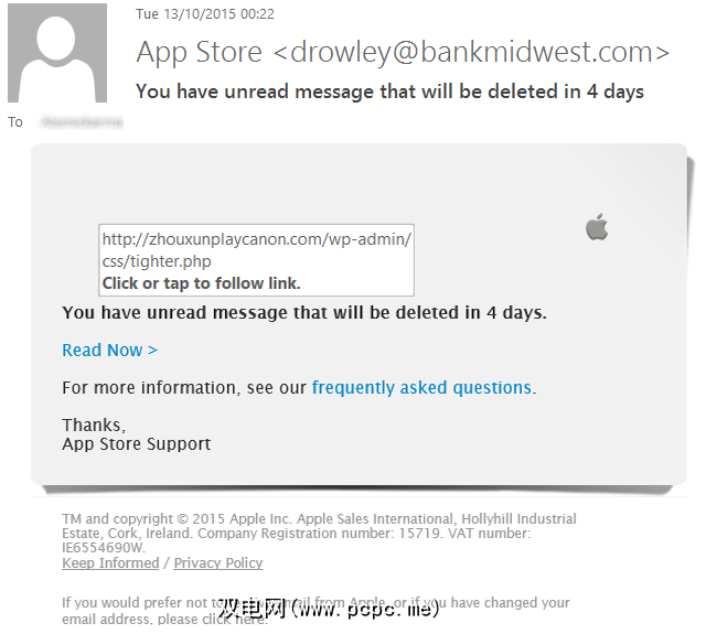 您还应该考虑邮件的内容,以查看其是否为伪造。合法公司不会通过电子邮件要求您提供信用卡,社会保险号,密码或其他敏感信息。仿冒电子邮件通常被设计为吓you您单击,例如App Store仿冒诈骗会发送虚假收据,以收取昂贵的订阅费用。