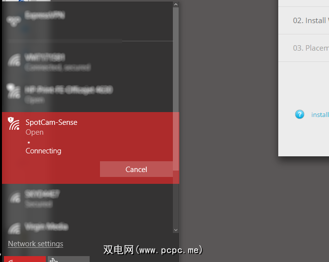 将设备放在无线路由器的范围内(建议将其放置在设备旁边),然后将摄像机背面的开关设置为AP,您应该会看到一个黄色LED。这意味着您可以继续进行安装,并使用系统任务栏中的网络连接图标通过计算机连接到相机。建立连接后,应将SpotCam Sense Pro摄像机背面的开关推至“客户端"模式,然后按照屏幕上的说明进行操作,直到显示摄像机视图的预览为止。