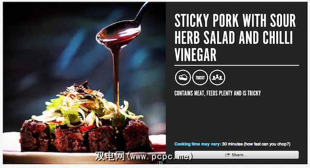 您还可以看到食谱的来源-厨师(以及他/她的照片)和他们餐厅的链接,以及食材清单,您必须执行的步骤来做饭,任何菜式都可以搭配。您还可以看到准备食谱需要多长时间。