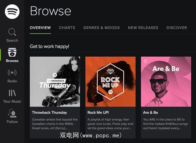 启动Spotify时,左侧栏上会出现一个无害的小标签,您可能一直在忽略它。它叫做 Browse (浏览),它应该是您开始厌倦现有音乐收藏时的首选。