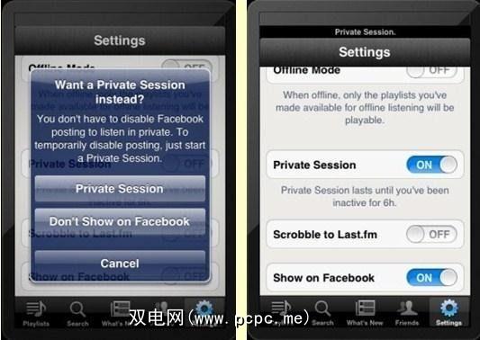 在过去,如果您选择将Spotify帐户连接到Facebook,那么您的Facebook朋友就会看到每个更新您听过的歌曲。虽然这很好,但是如果您经常使用Spotify,则可能是垃圾邮件。新版本使您可以切换Facebook共享,也可以在私人会话中听音乐,这意味着该发布将被暂时禁用,但将在您的下一个会话中恢复。