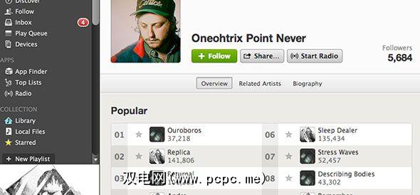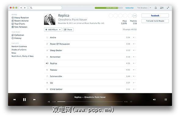 它很可能也是仍在积极开发中但尚未开发的最流行的软件适用于Apple最新笔记本电脑系列的Retina更新。简而言之,台式机播放器可以工作,但感觉很老套,在Spotify诞生7年左右的时间里几乎没有改变。实际上,Spotify删除了在页面上过滤结果的功能(以前可以通过Ctrl / Cmd + F进行访问),这意味着播放器实际上丢失了一个功能。 Spotify在与Facebook集成方面具有优势,但我不会根据其与Facebook集成的优势来判断流音乐服务,而是基于与音乐相关的能力。