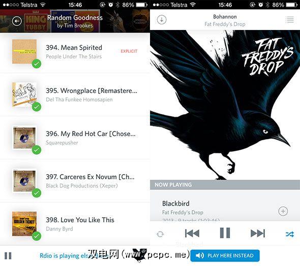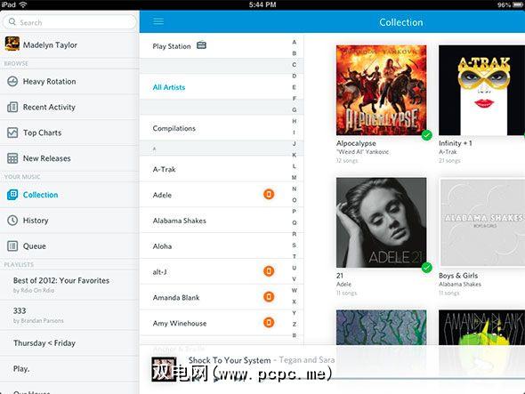 Rdio采用了不同的方法,可以将每个项目(歌曲,专辑,播放列表)标记为移动同步,并可以长按访问。两种服务都提供高质量的同步和流传输。