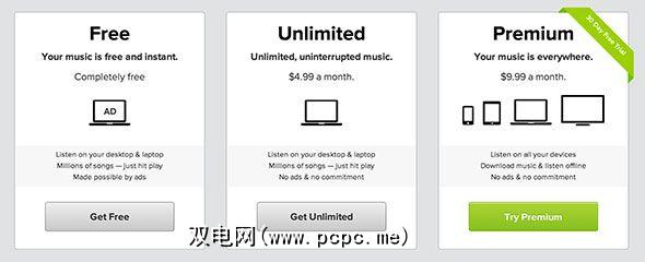 这两种服务都有三层:顶级高级服务,包括移动访问,无限制的桌面和Web访问以及有限制的免费服务。 Rdio的免费版本每月每个曲目提供的流媒体数量有限,而且当您用完时,您将不得不等待或订阅。这项免费服务仅在紧缩时间之前运行六个月,您必须离开或付款。 Spotify去年扩展了其无限的免费收听期限,但用户在浏览音乐时必须应对歌曲之间的音频广告,全屏广告播放器和横幅广告。相比之下,Rdio甚至完全免费向非付费用户提供免费广告。