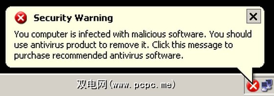 系统托盘中会出现一种更罕见但更严重的恐吓软件形式,作为通知,通常告诉您有大量感染在您的系统中需要立即解决。不幸的是,这些可能令人信服。