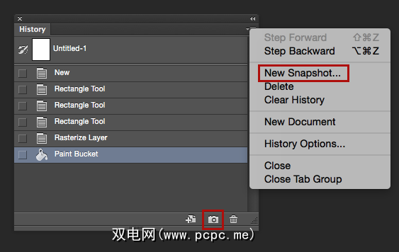 单击“确定"后,将在“历史记录"面板中找到该快照。