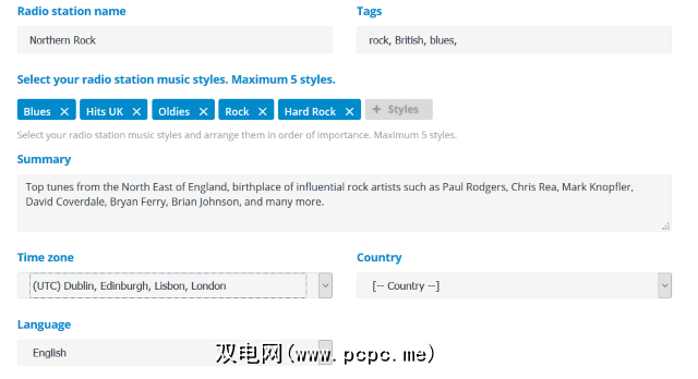 您可以使用现有的Google或Facebook帐户或注册网站本身来加入。完成此操作后,给电台命名,一些描述性标签,样式,摘要,并完成您的个人资料。别忘了上传所有重要的广播电台徽标! 保存这些详细信息以继续,并等待创建广播电台。