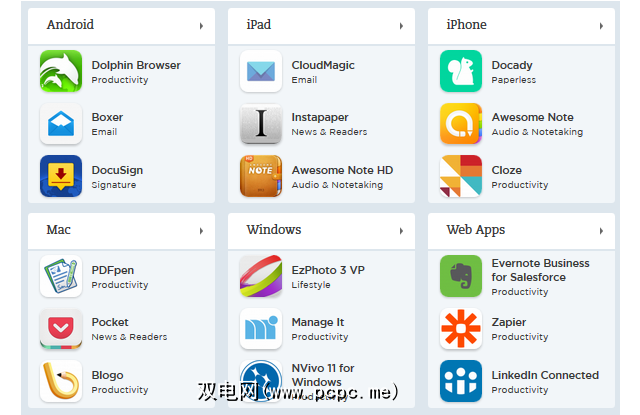 这里仅是每个平台上这些应用程序的一些示例,您可以访问Evernote应用程序中心以获取完整的信息。列表。