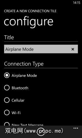 在打开“连接磁贴"的情况下,选择 +创建新的连接磁贴。在这里,选择您的连接类型(或“瓷砖类型",因为它应该被真正标记),然后为磁贴提供标题 –我正在创建蜂窝/移动电话Internet磁贴,因此我将其如此命名。这可以是自定义名称,也可以接受默认名称。