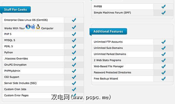 除此之外,还有一个令人难以置信的数字其他功能,例如无限的FTP帐户和子域,以及一键安装流行软件的安装程序。该服务器在具有PHP 5,MySQL 5,Perl 5,Python,PHPMyAdmin的CentOS上运行,并支持CGI请求和服务器端包含。这是一个令人信服的套餐,每月只需$ 5.99。