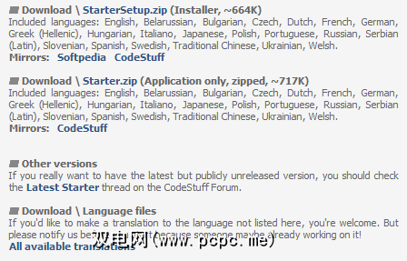 它可以作为安装和便携式归档文件提供。这两个下载文件的大小仅为700 KB。该网站还为Starter的翻译提供了几种不同的语言文件,因此在这方面需要付出很大的努力。