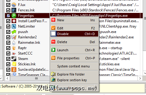 右键单击列表中的项目可提供大量选项,其范围比Microsoft在其系统配置中所允许的范围还要广泛。您可以执行基本操作,例如禁用或完全删除某项,启动它,或者执行更高级的选项,例如浏览Windows注册表中的关联键。