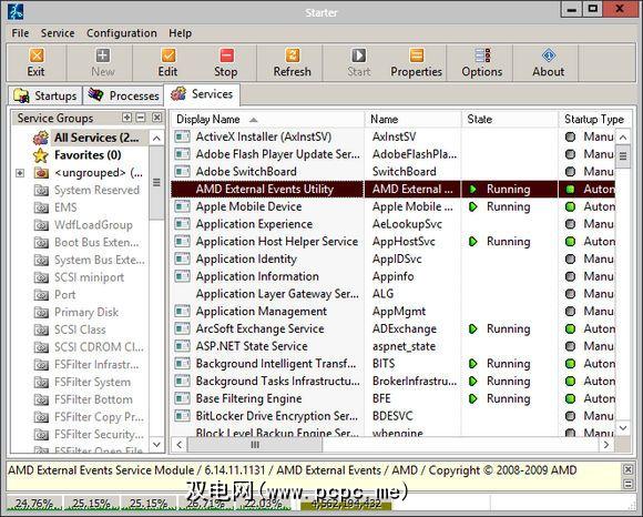 我欣赏的是此列表的视觉效果,它使您能够更轻松地通过图标(而不是纯文本)查看是启用还是禁用了进程。右键单击条目允许立即访问启动,停止或重新启动服务。您还可以选择启用或禁用它们。