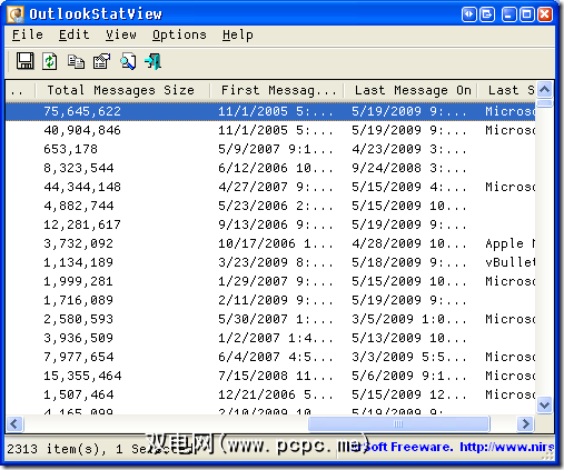 在发送第一个联系人和最后一条消息时,有更多的列,包括往返于此联系人的邮件总大小。因此,立即开始,这是一些您无法直接在Outlook中找到的好信息。