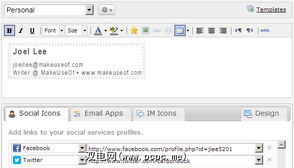 WiseStamp具有免费帐户选项,可让您在Twitter,Google +,Etsy,Ebay,Pinterest等上宣传您的最新帖子,以及共享各种社交媒体资料和自定义电子邮件签名。