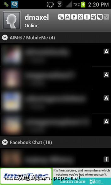 还有很多其他小奖励。如果在与联系人列表相同的屏幕上点击您的姓名,则可以更改显示名称(在支持此操作的任何网络上)以及聊天状态(例如在线,不在,忙碌等)和