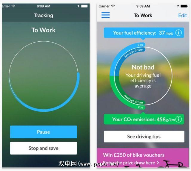 该应用会检测您何时在道路上行驶,并计算您所行驶的车辆的排放量。您可以通过指定是否