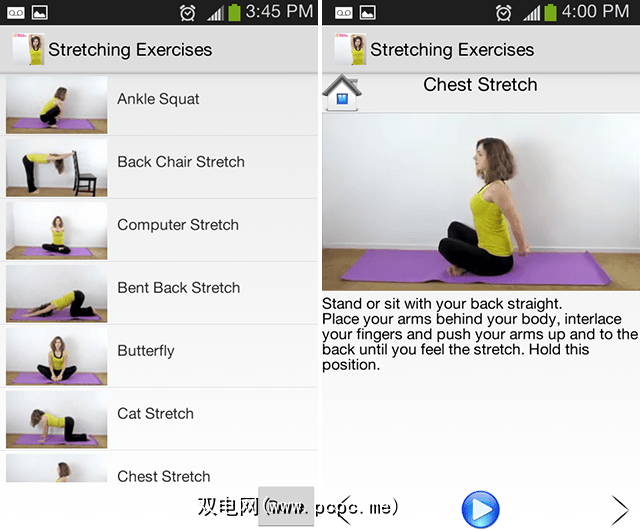 此应用程序提供30种不同的拉伸方式,可针对每个肌肉群,包括手臂,腿,背部,臀部,颈部,甚至脚踝。还有针对特定人群的7个例程,例如“计算机中断",“刚醒"和“释放压力"例程。练习是视频,而且它们是定时的,使它们易于遵循和模仿。在您的办公桌前做,是一个绝妙的例行程序,它几乎针对身体的每个肌肉群。可以调整难度,以便初学者和资深运动者都可以从中受益。 7分钟锻炼应用程序可让您轻松进行所需的快速锻炼。