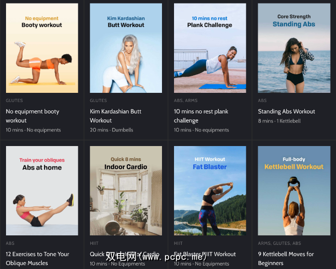 锻炼网格是针对家庭或健身房的不同定时锻炼程序的集合。每次锻炼都清楚地说明了它训练身体的哪一部分以及整个程序需要多长时间。单击任何会话以查找快速练习和锻炼练习。您会看到所有练习的列表以及应该执行这些练习的时间。