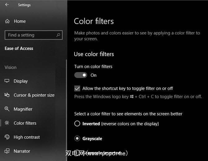 要在Windows中执行此操作,请跳至设置>易于访问>滤色器。启用打开滤色器滑块,然后您需要在下面选择一个滤色器。默认值为倒置;将其切换为灰度。